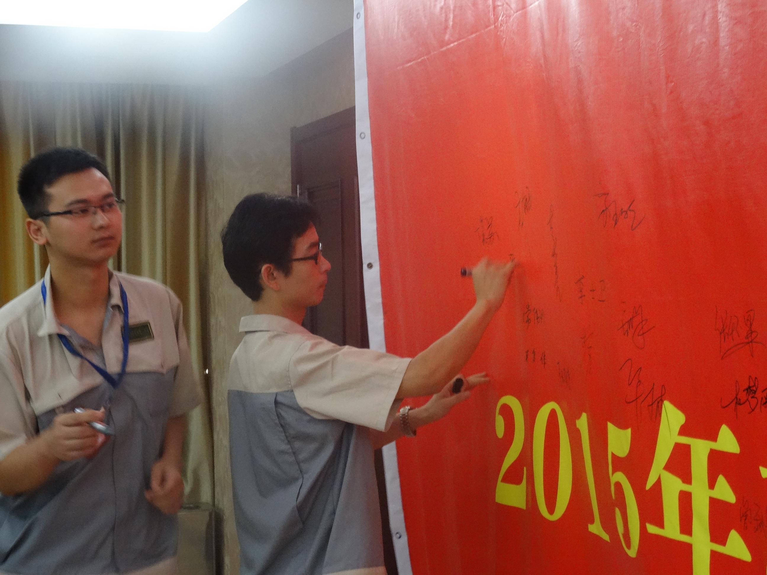 隨后模具事業(yè)部丁部長帶領(lǐng)全體人員進行安全生產(chǎn)月宣誓,并在誓師大會橫幅上簽名。