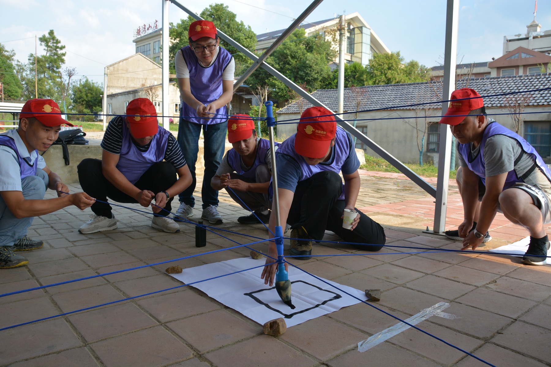 “一個巴掌拍不響,一根筷子易折斷”,妙筆生花活動充分說明了團隊成員之間協作的重要性。12名團隊成員各拉著一根繩子的末端,彼此配合,彼此提醒,同心協力寫出了“團隊”二字。